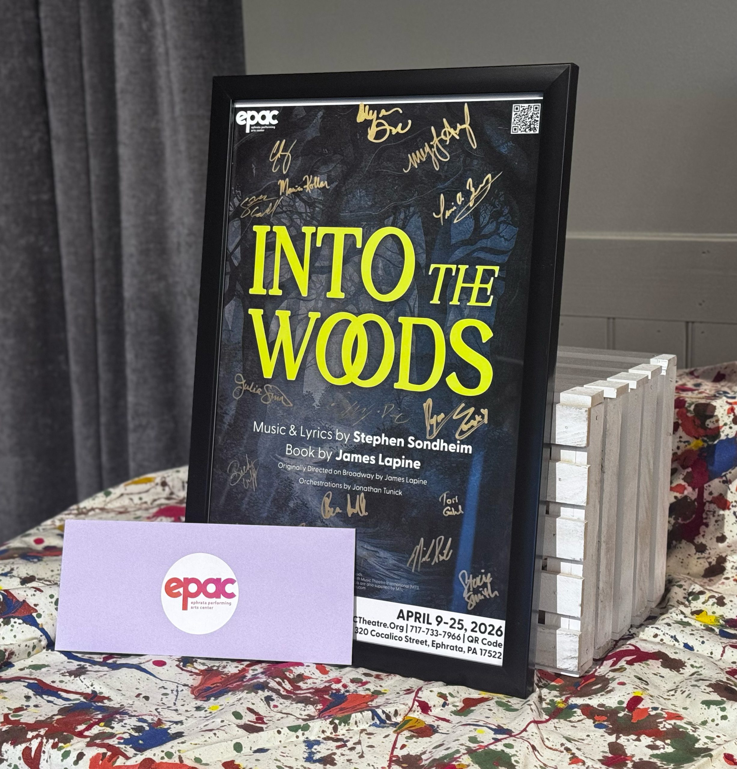 This framed Into the Woods showbill has been signed by the full cast, preserving the energy, talent, and camaraderie of this special production. Paired with two tickets to any 2026 EPAC Mainstage production.